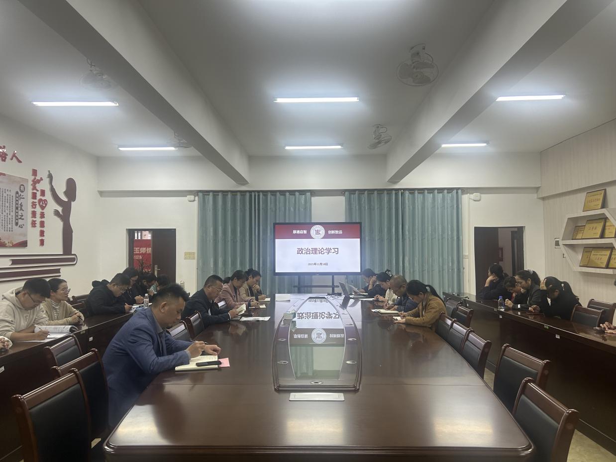 11月18日,我院在东校区至善楼509会议室召开2025年第六次政治理论学习会议。本次学习会由我院党委书记徐小军主持领学,学院领导班子成员以及全体教工党员参加会议。